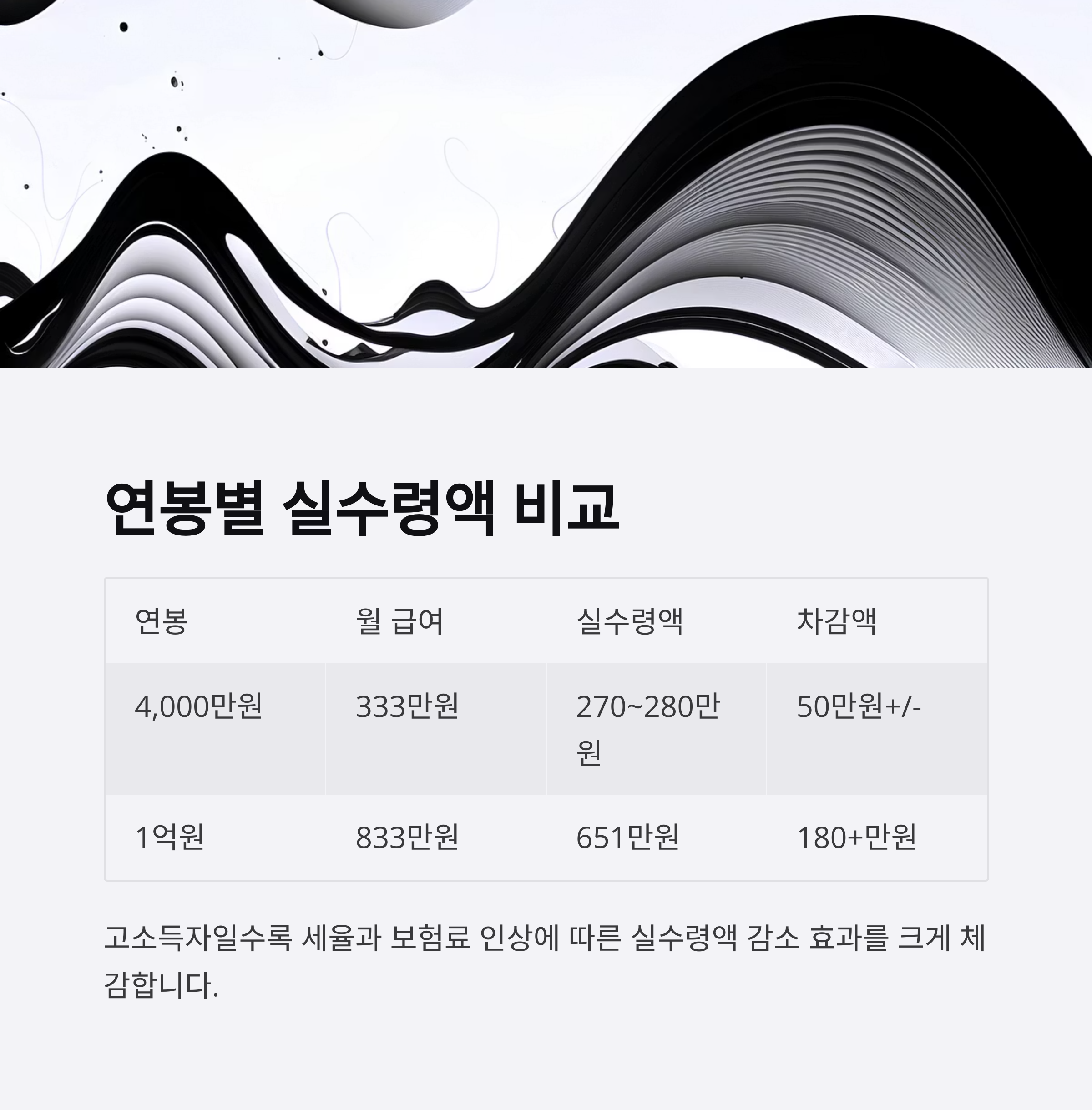 예를 들어, 1억 원 이상의 고소득층은 건강보험료와 소득세 영향으로 더욱 큰 실질 급여 감소를 겪습니다.