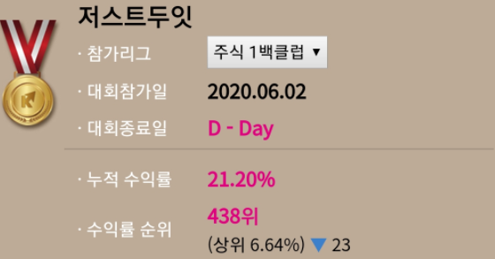 그리고 다음날 아침 8시30분에 자동매매도 수익9.9% 손실9.9%를 설정하고 10시30분까지 기다립니다. 그리고 10시30분에 수익매도나, 손절이 되지 않았을 경우 그냥 시장가로 매도를 했습니다. 이러한 방법으로 매매를 계속 진행했고, 코로나 사태 초기에도 매매에 별 문제가 되지 않았습니다. 다른 종목들은 다 하락하고 있어도 코로나 관련 테마주들은 계속해서 상승하고 있었기 때문에 수익은 계속해서 발생했습니다. 그러던 중 키움증권에서 실전투자 대회가 열렸고, 이 매매방법만 사용했을때 누적수익률이 얼마나 나올지 궁금했습니다. 매매결과는 아래와 같습니다.