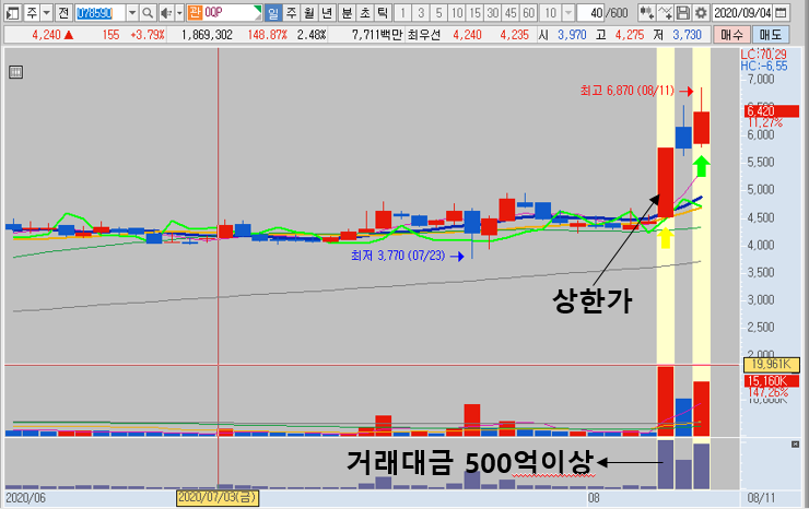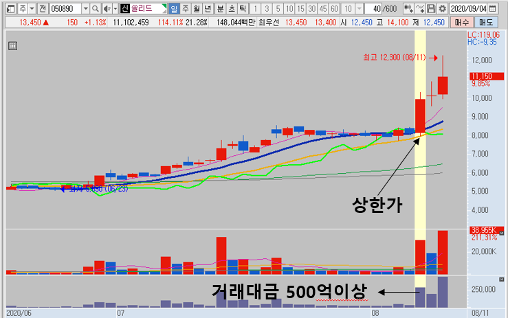 1. 500억이상 거래대금이 터진 상한가 종목찾기(D-day)