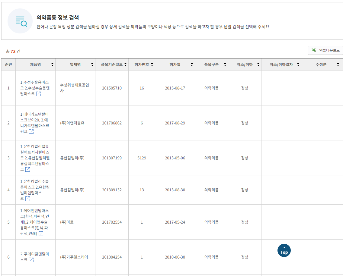 간단한 방법으로 구문을 할 수 있는 방법을 알았지만, 그래도 의심이 되어 알고 싶다면. 네이버에서 의약품안전나라를 검색하면된다. 그러면 식약청에서 운영하고 있는 의약품 관련 정보를 제공해주는 사이트가 나온다. 거기 검색란에 덴탈마스크라고 검색을 하면 식약청에서 관리하고 있는 업체와 리스트가 나온다. 이곳을 참고해서 마스크 현명하게 구매하길 바란다.