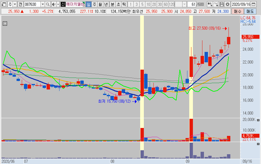 에이치엘비생명과학은 어제부터 계속해서 지켜보고 있었습니다. 어제 갭을 띄우면서 잠시 눌렸을다가 시가를 돌파하는 모습에 매수에 가담했는데, 생각처럼 가질 않았네요. 금일 상승추세를 잘 지켜주면서 올라가길래 저항구간에서 매도했습니다. 매도 후에 쪼옥 빠지는 모습이네요.