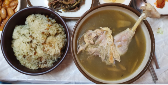 두번째 맛집은 닭백숙으로 유명한 서울여관식당입니다. 청송이 닭요리가 유명한지 맛집을 검색하면 닭요리가 엄청 많이 나왔습니다. 서울여관식당은 수요미식회에 나왔던 곳으로 유명세를 탄것 같습니다. 제가 갔을때도 사람들이 많이들 찾아왔습니다. 닭백숙과 떡갈비를 모두 맛보기 위해서 저희는 세트메뉴로 시켰습니다. 그러면 떡갈비와 염통구이 그리고, 닭다리만 들어있는 백숙이 나와서 한번에 맛보기 좋습니다. 그리고, 백숙에 말아먹는 찹쌀밥은 더 달라고 하면 더 준다고 했습니다. 10살 7살 두 아이와 함께가서 세트메뉴 3개를 시켜서 먹었는데, 배부르게 잘 먹고 왔습니다. 식당 위치는 달기약수터옆에 있습니다. 약수터 근처까지 간 김에 약수물도 한번 먹어봤습니다. 탄산이 들어있는 약수물이었는데, 시중에서 먹는 그런 탄산수 생각하고 드시면 미간을 찌푸리는 맛입니다.
