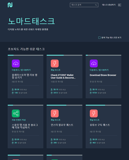 인터넷상에서의 온라인 활동 미션을 클리어하면 그 보상으로 일정금액의 암호화폐를 지급해주는 서비스 입니다. 예를 들어 유튜브에 구독과 좋아요를 눌러주면 태스크 생성자가 정해놓은 보상을 받을 수 있는 서비스 입니다.