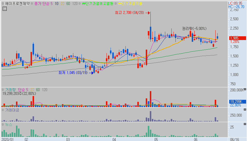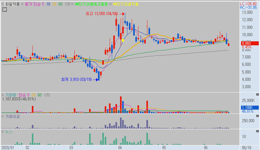 지금까지 코로나 치료제에 대해 알아보고 관련주들을 살펴보았습니다. 종목들의 위치가 종목별로 모두 다르게 형성이 되어있네요. 많이 빠져서 헤매고 있는 주식들보다는 전고점에 붙여서 고가놀이를 보여주는 주식들이 향후 좋은 수익을 만들어 줄것 같습니다. 저도 위의 종목들 중에서 차트 위치가 괜찮은 종목들을 관심종목에 등록해놓고 계속해서 주시할 생각입니다.