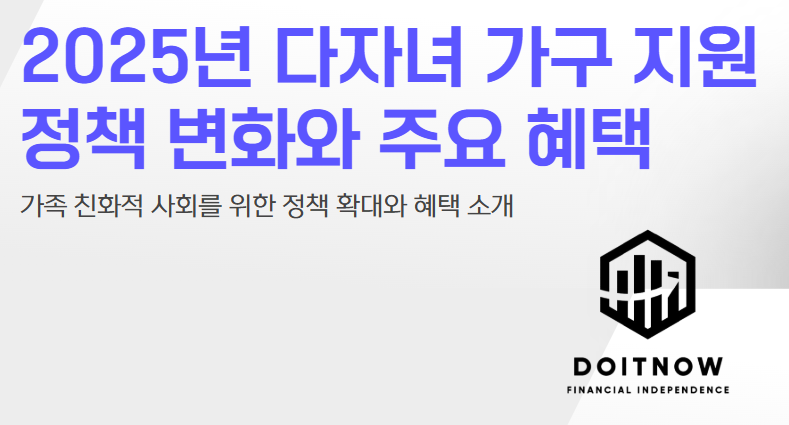 아이들을 키우는 입장에서 2024년과 달리 2025년에는 다자녀 가구 혜택이 어떻게 바뀌고 확대되는지 알아보았습니다. 특히 요즘 부쩍 많은 분들이 다자녀 혜택에 관심을 갖고 있던데, 저 역시 자녀가 여러 명이라 교육비, 생활비등 부담이 만만치 않아 정부와 지자체에서 마련한 다양한 지원 제도들을 미리 파악해두면 좋을 것 같습니다.