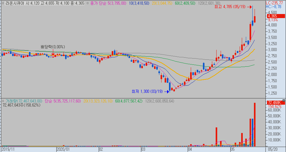 한국전자인증이 상한가를 가고 대장이었으나, 시간외에 단기과열예고 공시가 나올 것이라고 제 차트에 나타나서, 한국전자인증대신 라온시큐어를 선택했습니다. 라온시큐어의 경우 상한가는 가지 못했지만, 거래대금이 풍부해서, 한국전자인증이 단기과열예고 공시가 뜨면 대장이 바뀔것이라 생각했습니다.