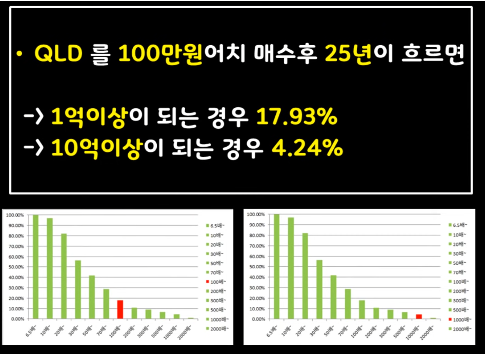 QLD를 100달러치를 매수 하고 25년이 흐르면 얻게되는 수익을 과거데이터를 기반으로 백테스팅 한 결과입니다.