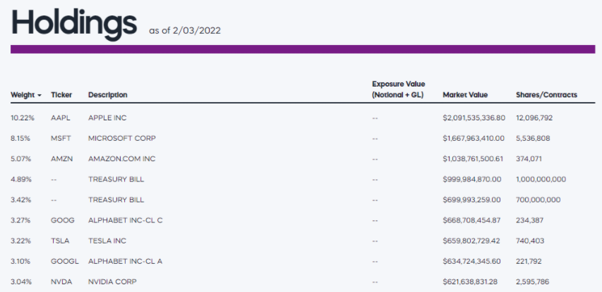 TQQQ에 주요 편입종목은 아래의 표와 같이 우리가 익히 알고있는 미국의 대표적인 기업들이 포진되어 있습니다. 시가총액 순으로 편입비율은 조금씩 다르게 구성되어 있는 것을 알수 있습니다.