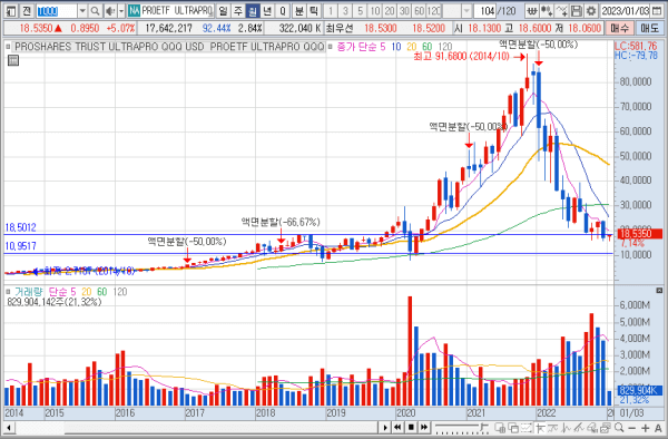 또한, 미국 10년 만기 국채금리도 3.57%까지 밀리고, 통화정책을 반영하는 2년물 국채금리역시 4.26%까지 하락하는 결과를 보여주고 있습니다. 투자자들은 제롬 파월 의장연설과 미국 CPI등에 주목하고 있는 상태입니다. CPI상승률이 12월 대비 둔화된다면, 나스닥 지수에 좋은 영향을 줄 것이라고 생각됩니다. 이는 곧 미국의 금리인상을 0.25%상승에 그칠것으로 전망하고 있기 때문에 나스닥 지수의 반등을 기대할 수 있고, TQQQ역시 반등할 것으로 예측되고 있습니다. TQQQ를 신규로 진입하려는 투자자와 현재 손실상태로 보유중인 투자자 역시 매수를 하기엔 좋은 시기로 판단됩니다. 저 역시 미국 CPI지수를 확인하고, 딸아이 계좌에 추가로 TQQQ를 매수하려고 생각하고 있습니다.
