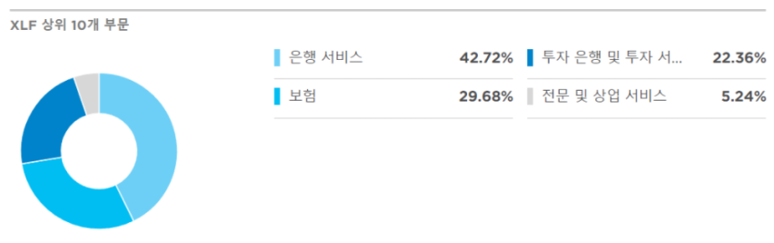 XLF가 투자하고 있는 섹터들은 아래 표와 같습니다. 전통적인 금융업종들이 대거 포진해 있는 것을 볼 수 있습니다.